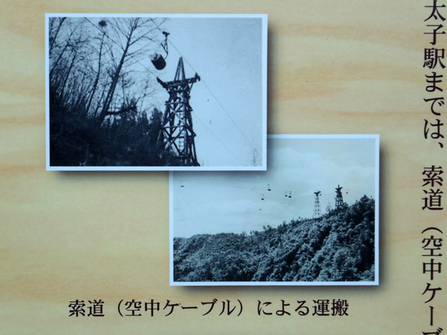 開通は昭和 20 年1月2日、大雪の中、太子駅より鉄鉱石が初出荷されましたが、すでに戦況は悪化し、米軍の空襲により交通機関はむ寸断され、思うような出荷が出来ないうちに終戦を迎えました。なお群馬鉄山から太子駅までは、索道(空中ケーブル)により鉄鉱石が運搬されていました。
