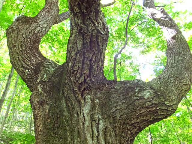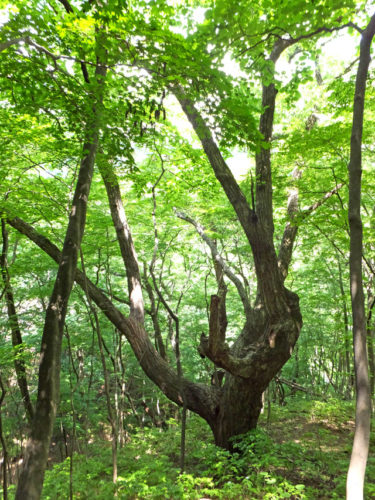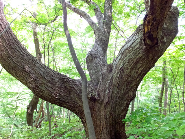 吾妻渓谷、左岸の山中を調査中に、を思わず見とれてしまう、ミズナラの巨木たちに出会いました。なんていいところでしょう。