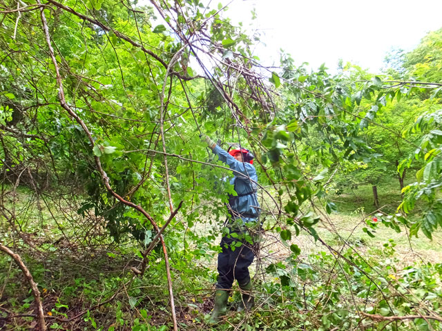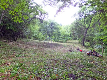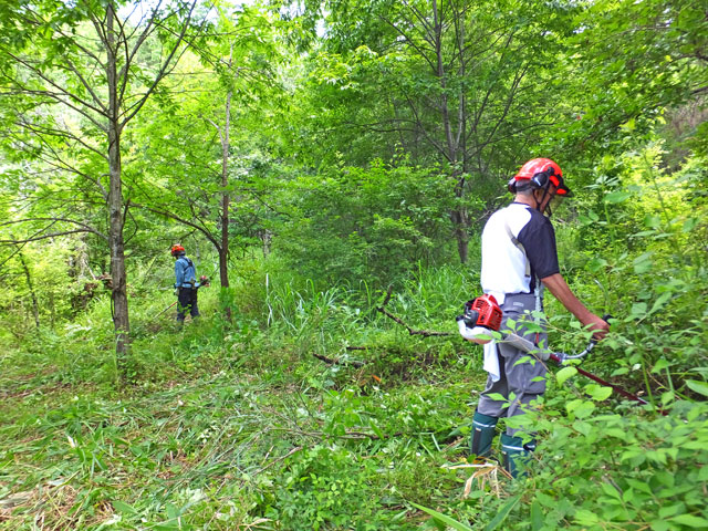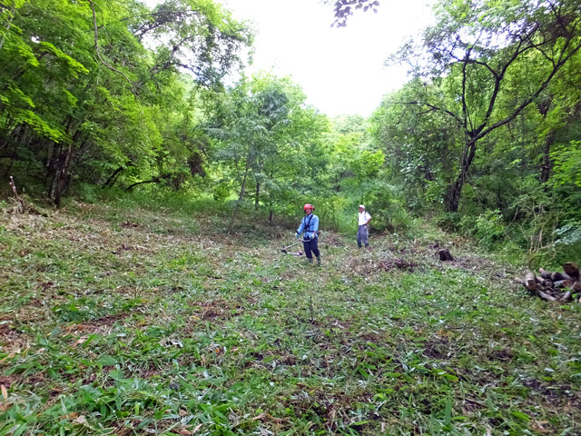 先に、三人がかりで草刈りをし、林床をきれいにしてから、