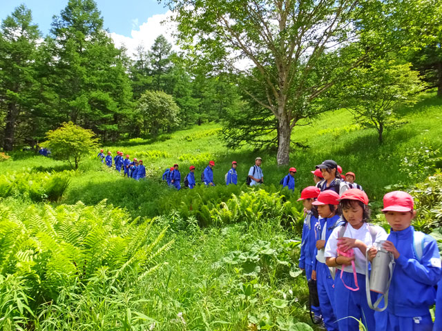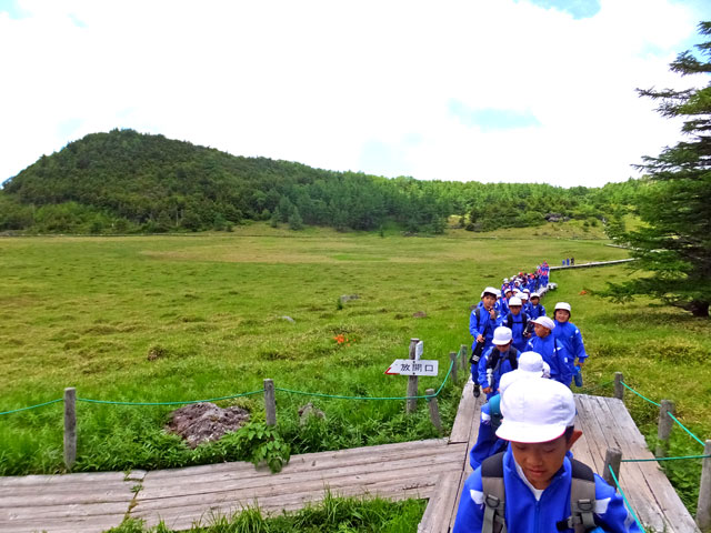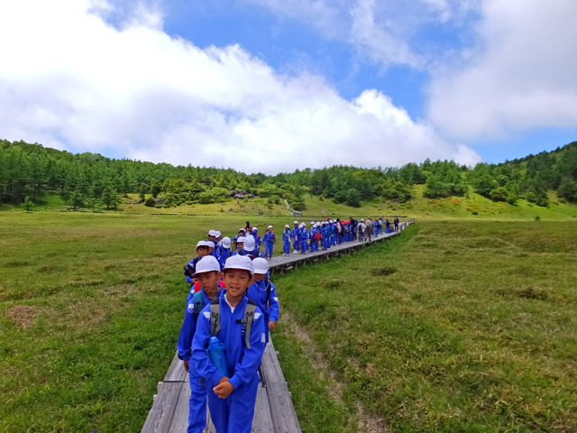 明日には猛烈な台風が沖縄を直撃するらしいですが、ここ長野県池の平は天気が良いです。今日は埼玉県のY小学校様62名を自然学習ハイキングです。