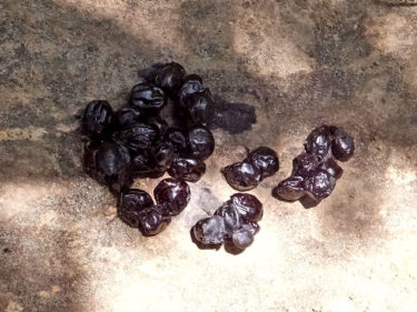 「テンの高糞」。色と形状からミネザクラのサクランボだと思います。