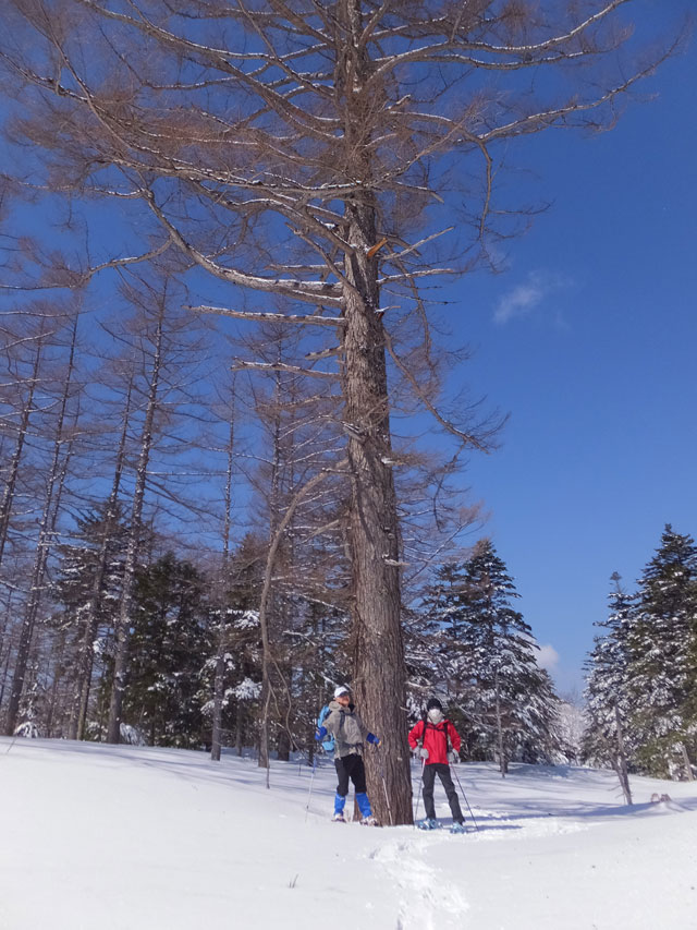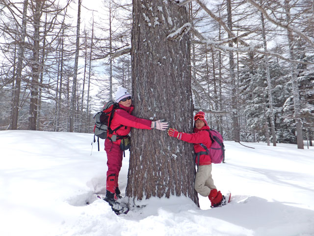 万座カラマツ天然母樹林内のカラマツ巨木の一つ、「大いなる母の木」別名「ショハーの木」です。