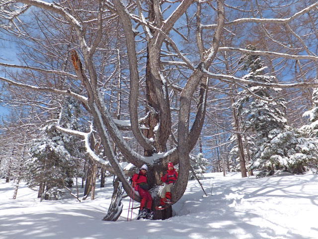 万座カラマツ天然母樹林内のカラマツ巨木の一つ、「仁王カラマツ(吽形)」です。阿形は別にあります。