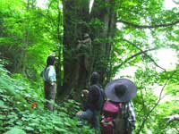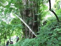 裏側からは、ちょっと頑張れば木登りして記念撮影もできます。目の丈周囲6m、樹齢推定 300 年、高さ 35 m の巨木です。