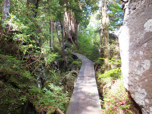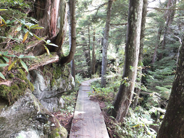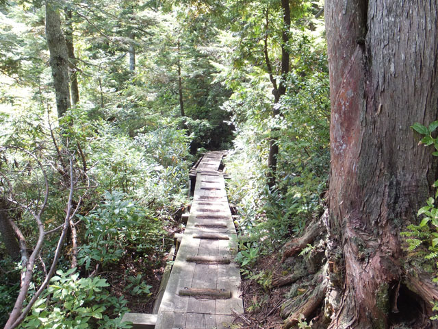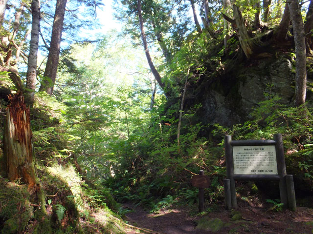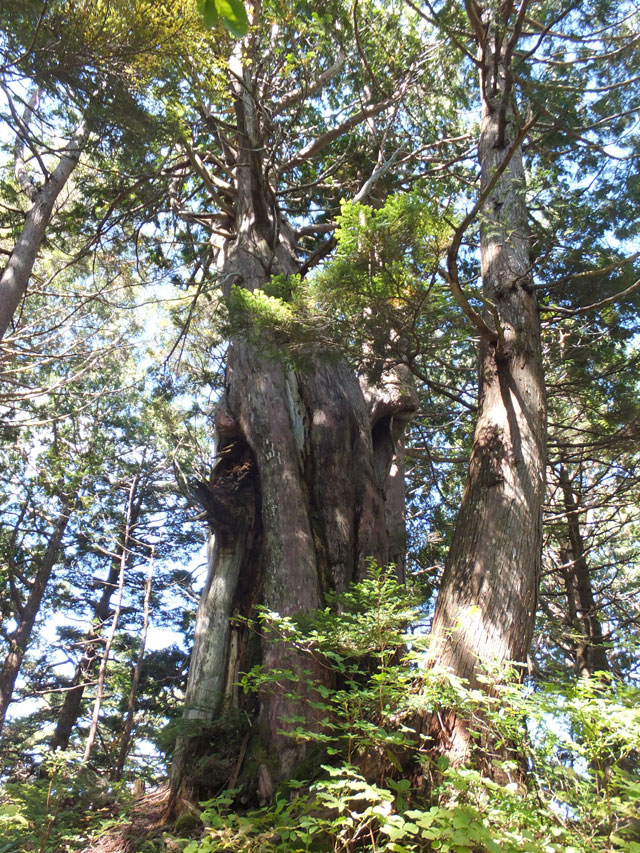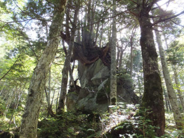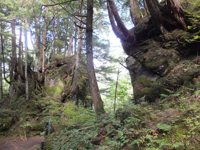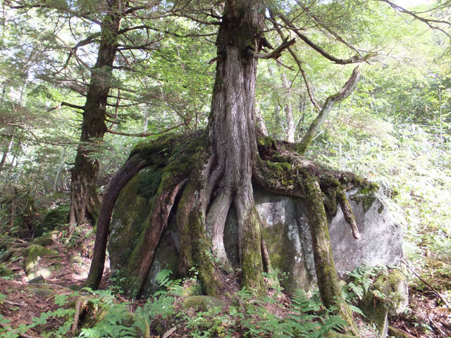 志賀高原信州大学自然教育園の奥部には、ゴツゴツした大きな溶岩塊を基岩としたクロベなどの針葉樹巨木林があります。普通の森とはひと味もふた味も違う、本当のディープフォレストが持つ「深山の霊気」に深く打たれることになります。
