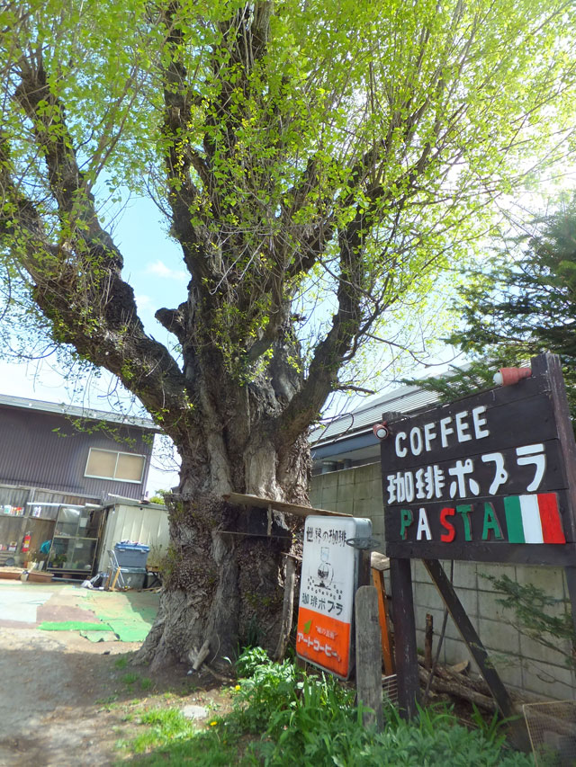 嬬恋村から北軽井沢に抜ける途中で、ふと、大木に目がとまりました。北軽井沢の昔ながらのカフェ・ポプラさんのポプラの木です。