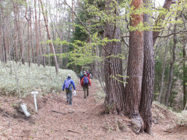 王城山神社横から王城山へ上る登山道途中にある私好みの大木。アカマツが一塊の根から三本の幹を直立させています。ここを右に曲がります。