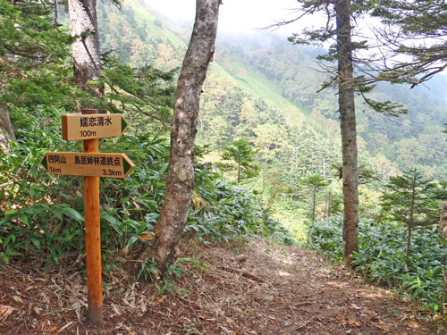 嬬恋清水の看板分岐を南へ。トラバースしながら数十メートル下りるようになります。