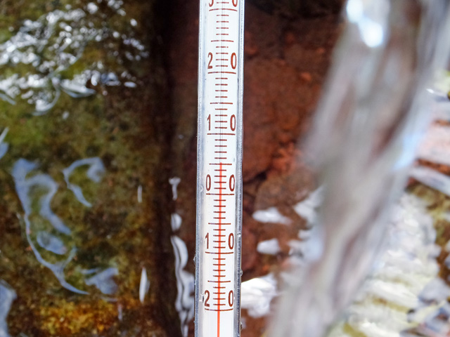 冷たくて美味しいですが、嬬恋清水の本当の味は、10℃位にして飲むと最もおいしいので、手持ちのボトルに水を汲み、リュックの中へ。四阿山山頂で昼食を食べる頃、ちょうど10℃位になっています。