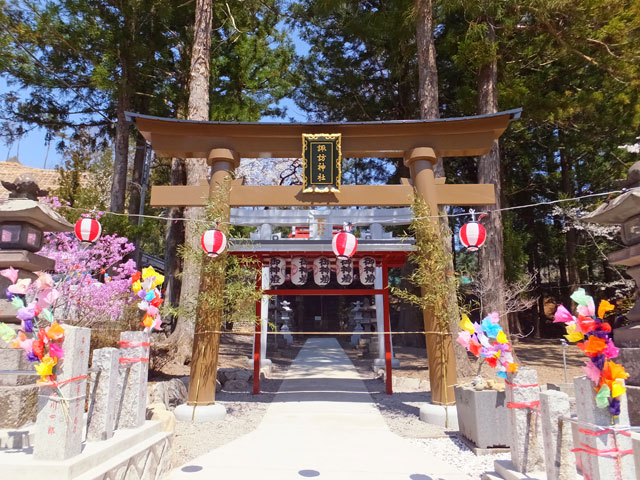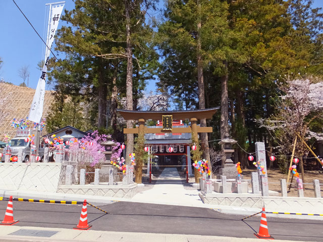 長野原諏訪神社に行くと、たまたま、明日から(4/26-4/27)は春祭りがあるらしく、綺麗に飾られていました。