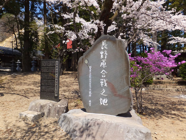 ここは、西吾妻最大の合戦だったといわれる「長野原合戦」があった場所とされていて、境内の石碑にはこう書いてあります。