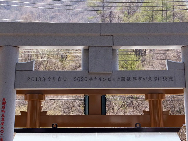 短い参道に三つも鳥居が並んでいて、最後の鳥居の裏には「2013年9月8日 2020年オリンピック開催都市が東京に決定」と書いてあります。ビックリしました。