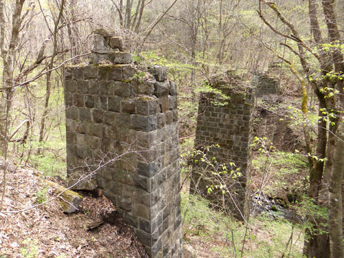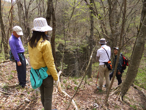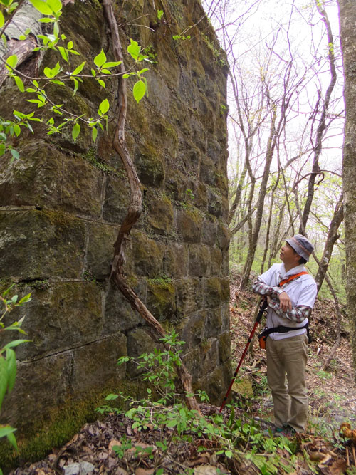 川を渡り、橋脚に触れてみます。当時の思い出が伝わってきますか?石を積んだ際にはみ出たコンクリートは、外から見えるところが綺麗に線を入れてあります。繊細な気配りと技術を持つ日本人らしい仕事っぷりですね。