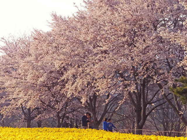 素敵な家族が花見に来ていて、まるで写真撮影会のようになっていました…